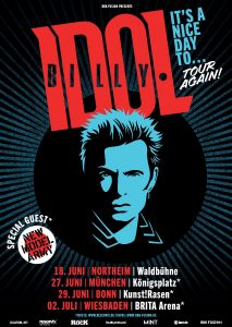Rocklegende Billy Idol kehrt auf die Bühne zurück und kommt 2025 unter dem Motto „It’s a Nice Day To… Tour Again!“ auch für vier Termine nach Deutschland. Die Tour beginnt am 30. April in Nordamerika in Phoenix und macht im Juni und Juli einen Abstecher nach Europa, mit Auftritten in Northeim, München, Bonn und Wiesbaden.