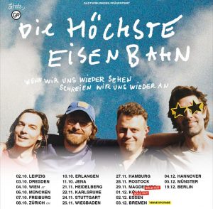 Die Höchste Eisenbahn ist wieder da und das ist gut so. Denn gute Texte und Wortwitz wie diese Band, bieten nur wenige in Deutschland. Und nach Köln kommen sie spätestens im Sommer. Dann treten sie als einer der Headliner beim Even Flow-Festival 2026 im Kölner Tanzbrunnen auf (12.07.26).