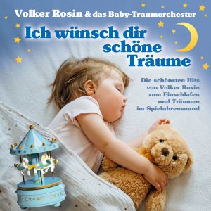 während des gesamten späteren Lebens positive Effekte hab en. Die beruhigenden, sanft daher fließenden Melodien von Volker Rosins Liedern des Album „Ich wünsch dir schöne Träume“ können Babys helfen, allein in den Schlaf zu finden – und ihre Eltern als Schlafhelfer so nach und nach ablösen. Studien haben gezeigt, dass Babys, die mit Musik aufwachsen, schneller lernen und sich insgesamt besser entwickeln.
