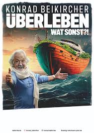 Die Location ist eine Premiere für mich, Konrad Beikircher und sein Humor nicht. Ich schätze seinen Humor und seine Beobachtungs- und Auffassungsgabe. Ich bin vor allem Fan der rheinischen „Trilogie“, die inzwischen weit mehr Teile umfasst. Schwerpunktthema ist an diesem Abend das Überleben – was sonst? Und vor allem wie der Rheinländer überlebt in diesen Krisenzeiten. Beikircher selbst redet – mittlerweile an einem Tisch sitzend – augenzwinkernd und liebevoll über die Marotten und Angewohnheiten der Rheinländer. Mit fast 80 ist das alles mehr als normal. Auch er beschäftigt sich mit dem Thema Gendern und dass das nichts für ihn sei. Er bringt ein Beispiel aus der Kneipe an, wo eine Frau eine Radlerin bestellt. Der Wirt erwidert, dass das Zapfhuhn, das nicht hergebe. Solche Gags finden guten Anklang. In dem gut gefüllten Saal, punktet Beikircher immer dann, wenn er den Rheinländer etwas hochnimmt.