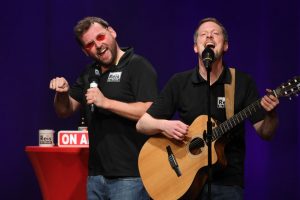 „Reis against the Spülmachine“, das Duo um die beiden Songslamgewinner und Preisträger des NDR-Comedy-Contests Onkel Hanke und Philipp Kasburg ist am Montagabend, den 7.10. (um 20 Uhr) mit ihrer Show „Radio Reis -die Hitwelle – aktualisiert“ im Bonner Pantheon an der Siegburger Str. 42 zu erleben. Vorhang auf – Radio an! Reis Against The Spülmachine präsentieren in ihrem dritten Bühnenprogramm ihren eigenen Radiosender. „Radio Reis – Die Hitwelle“ sendet das Beste von gestern, heute und morgen – Welthits mit Witz. Die Gute-Laune-Liedermacher drehen wieder voll auf und