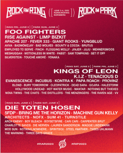 Mit den einzigen europäischen Auftritten der Foo Fighters in diesem Jahr und den weiteren Neuzugängen steht somit ein sensationelles Programm, das mit einer nie dagewesenen Breite und Exklusivität an hochkarätigen Künstler*innen einmal mehr die nationale Festivalszene anführt. Die Toten Hosen verlängern ihre Live-Feierlichkeiten zum 40. Bandjubiläum und treten erstmalig in einem Kalenderjahr nur bei Rock am Ring und Rock im Park auf, wo sie 2023 ihre beiden einzigen Headline-Shows in Deutschland spielen. Auch Kings Of Leon und die britischen Metalcore-Pioniere Bring Me The Horizon kann man in diesem Sommer auf mitteleuropäischen Festivals ausschließlich bei Ring und Park erleben.