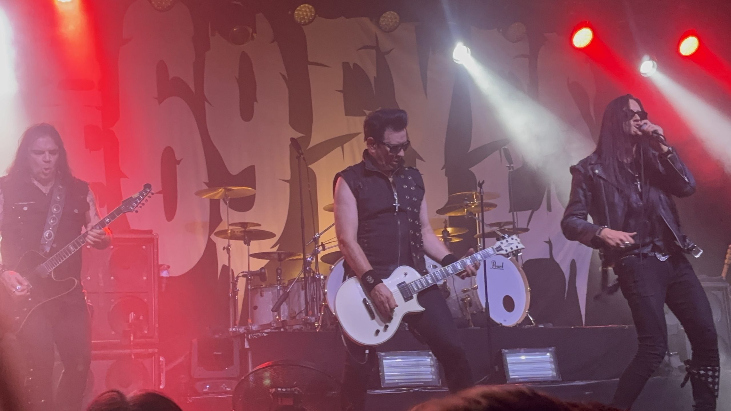 Pünktlich um 20 Uhr betraten The 69 Eyes die Bühne, und sofort legten sie los mit dem treibenden Opener „Devils“, der das Publikum mit düsterer Power einholte. Direkt danach folgten „Don’t Turn Your Back on Fear“ und „Feel Berlin“, Klassiker, die sowohl alte Fans als auch Neulinge in ihren Bann zogen. Besonders das Publikum spürte die Nostalgie, als Jyrki 69 kurz innehielt, um die Menge zu begrüßen, bevor es weiterging mit dem Song „Gotta Rock“, einem überraschenden Cover von BOYCOTT. Dieser Song zeigte, dass die Band in dieser Tour bewusst auf ihre Wurzeln zurückgreift.