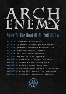 Um dieses neue Kapitel zu feiern und ihre unvergleichliche und unverfälschte Banddynamik zu präsentieren, kündigt Arch Enemy für den Sommer 2026 eine Reihe intimer Clubkonzerte in Europa unter dem Titel „Back To The Root Of All Evil” an. Tickets können hier erworben werden.