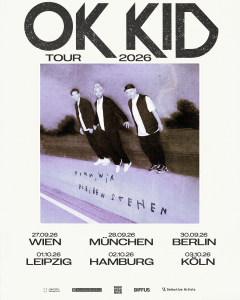 Nach „Rave On“ veröffentlichen OK KID die neue Single „Wie ein echter Mann“. Der Track stammt aus dem neuen Album „Komm, wir bleiben stehen“, das am 29.05.2026 erscheint. Im Herbst geht es dann mit neuem Album im Gepäck auf Tour. Tickets gibt es ab sofort hier!