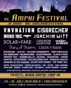 Mit internationalen Headlinern wie VNV Nation, Eisbrecher, Mono Inc., Solar Fake u. v. m. sowie zahlreichen Szene-Highlights steht das Amphi Festival 2026 für Vielfalt, Qualität und musikalische Leidenschaft – und für ein Jubiläum, das gefeiert werden will.