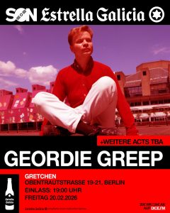 Nach einem außergewöhnlichen Konzertjahr voller Highlights & ausverkaufter Shows – darunter English Teacher, Black Lips, Σtella & Lambrini Girls – meldet sich SON Estrella Galicia mit der nächsten hochkarätigen Ankündigung zurück: Am 20. Februar bringt die renommierte Konzertreihe den britischen Musiker Geordie Greep (Black Midi) ins Gretchen nach Berlin.
